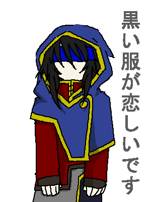 恥ずかしくて青いフードをかぶっているが、余計に恥ずかしい色合いになっている。
